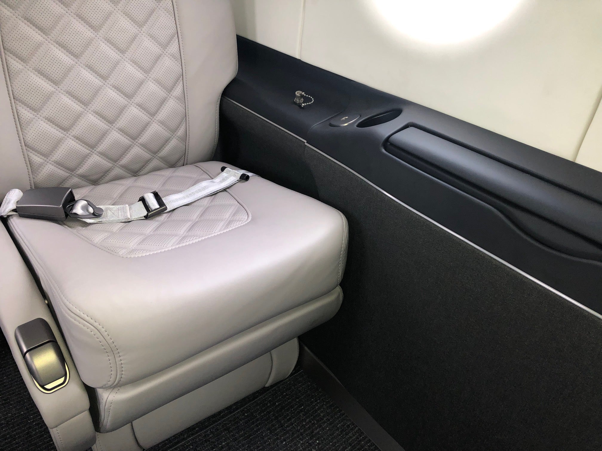 One of the most complex aspects of this project was the wrapping of the ceiling and sidewall panels, a task that demands technical skill and deep material knowledge. Our teamβs expertise in aircraft interior completions ensured that every panel was precisely prepared and wrapped, delivering a flawless finish across the cabin.