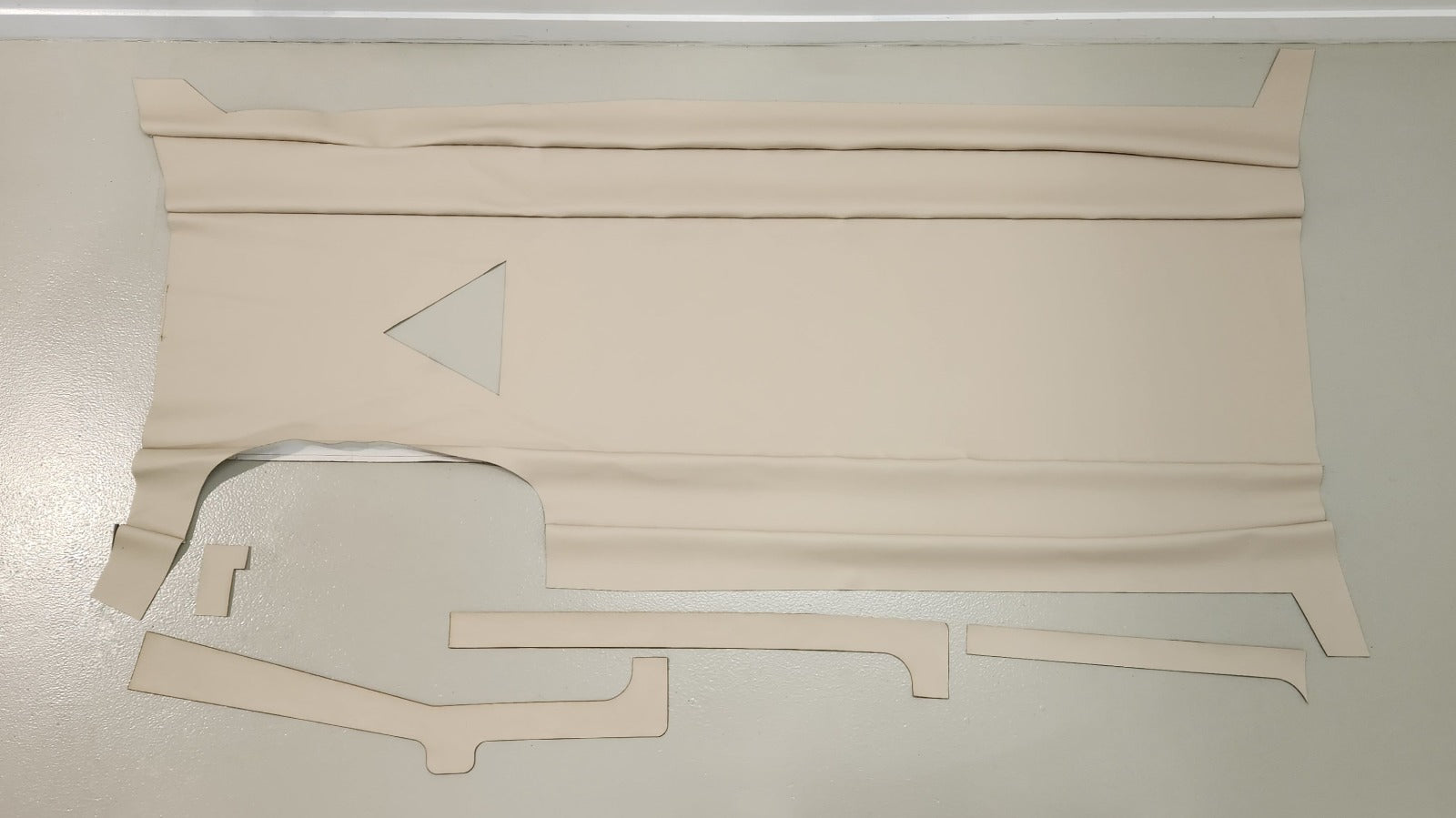 The suspended headlining for the Piper PA-28-161 runs longitudinally down the ceiling of the aircraft, contributing to the overall aesthetic of the cabin. Manufactured from beige-colored vinyl, the headlining was supplied in sections, including the main section and additional pieces on either side of the door and the rear pillar. The headlining includes a cut-out for the overhead console and features two seams running the length of the aircraft, ensuring a neat and seamless finish.