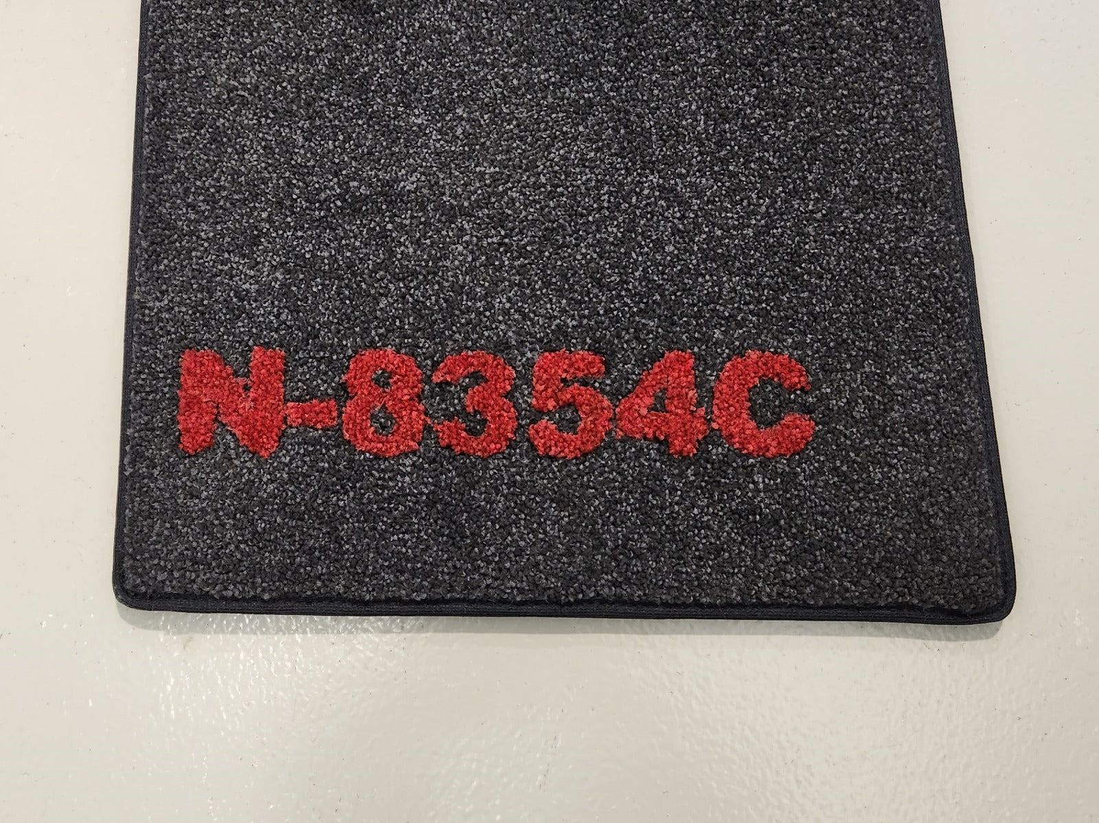 The ash grey carpet was chosen for the floor coverings, which features the aircraft’s registration number subtly in-laid in red carpet. To protect the carpet, heel mats were added around the pedals, ensuring durability in high-wear areas.