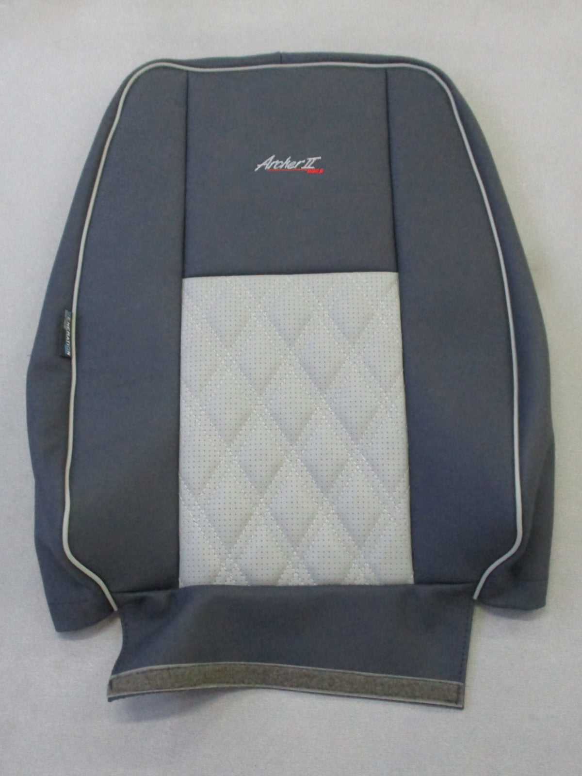 The seat dress covers were designed with navy blue leather (ADI-2021) as the main color, while the inserts were crafted from perforated titanium grey leather (ADI-1231). The center inserts featured double diamond quilting, creating a stylish and textured finish.