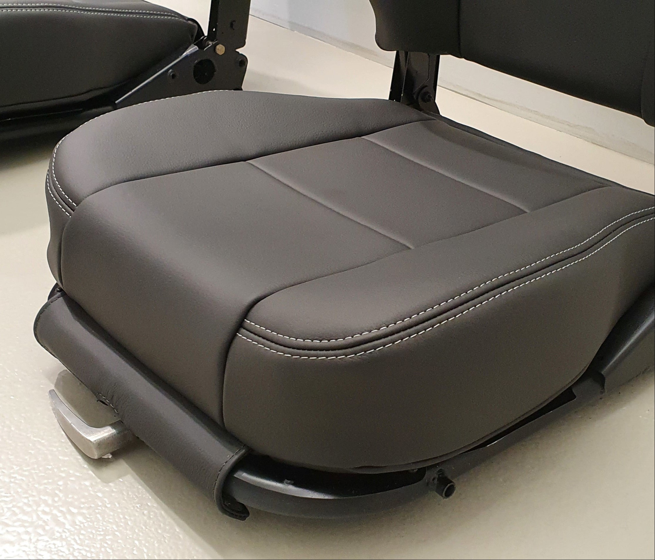 The seat covers were manufactured using aviation-grade leather in Titanium Grey (ADI-1231), offering both durability and a refined appearance.