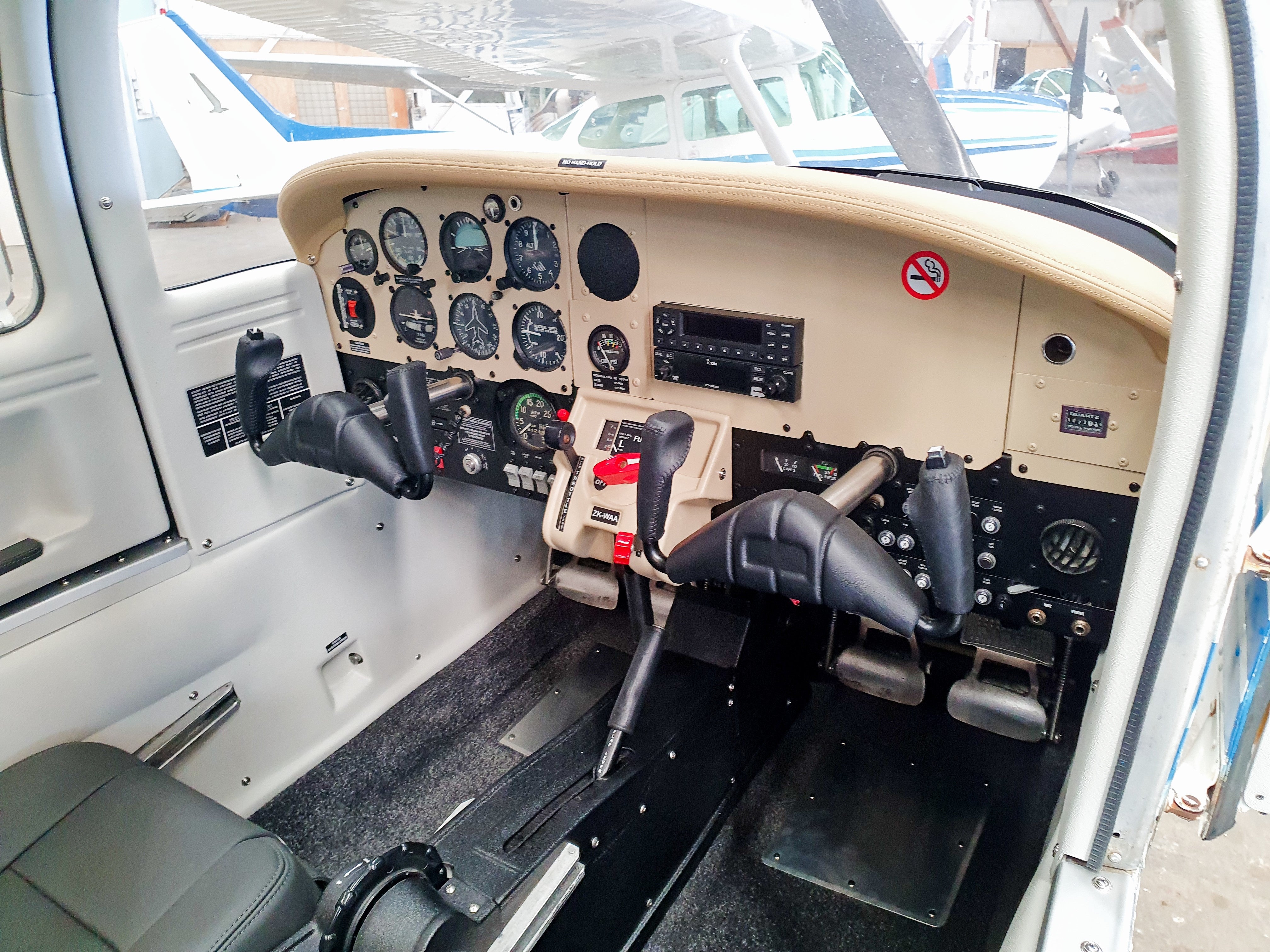Glareshield: Covered in UV-resistant synthetic leather (Samt Beige, ADI-4232), the glareshield not only provides durability but also complements the overall neutral colour scheme of the interior. The instrument panel was resurfaced, with the upper half matched to the glareshield colour, and the lower half finished in black.
