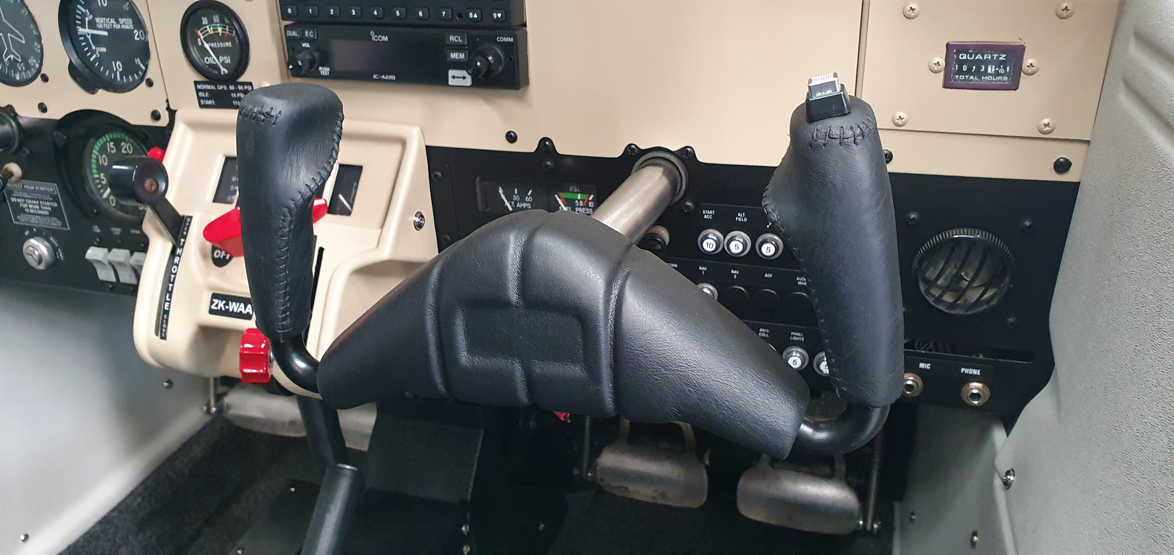Control Yokes: The hand grips of the control yokes were crafted from specialist black leather, hand-stitched with a curved needle to provide the perfect grip, ensuring precision and comfort for the pilot.