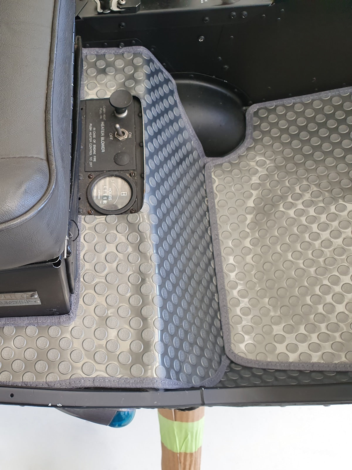 The flooring was carefully cut to include precise cutouts for controls, heater configurations, and other raised elements within the aircraft, ensuring a seamless fit and providing a smooth, functional surface for the interior.