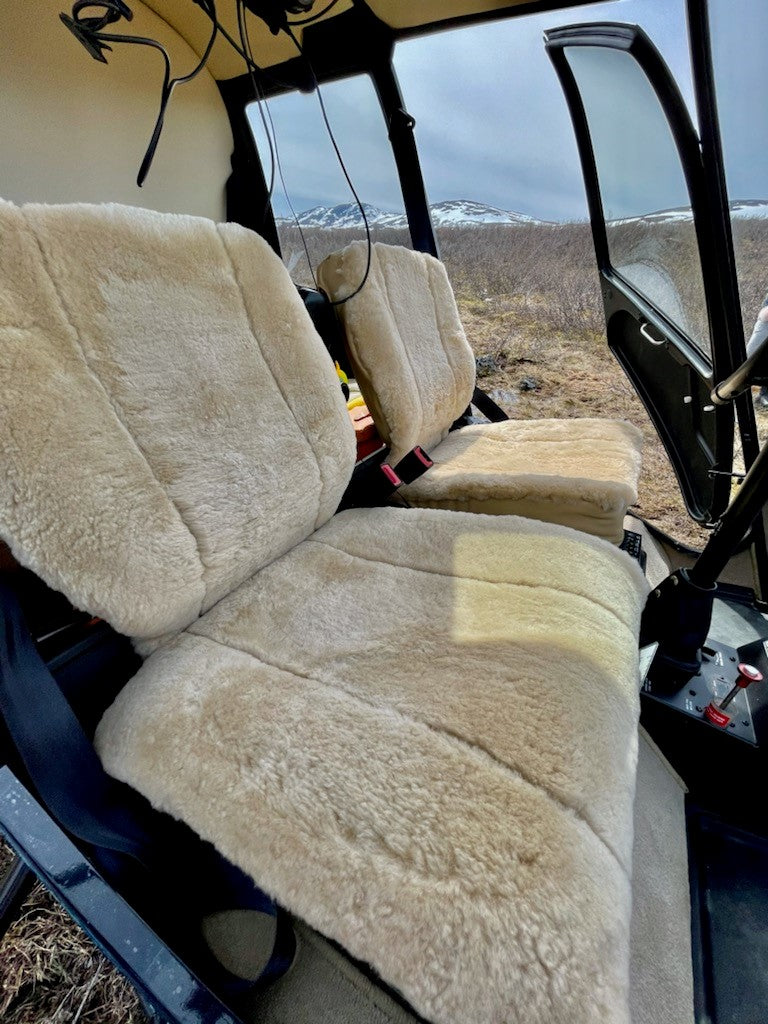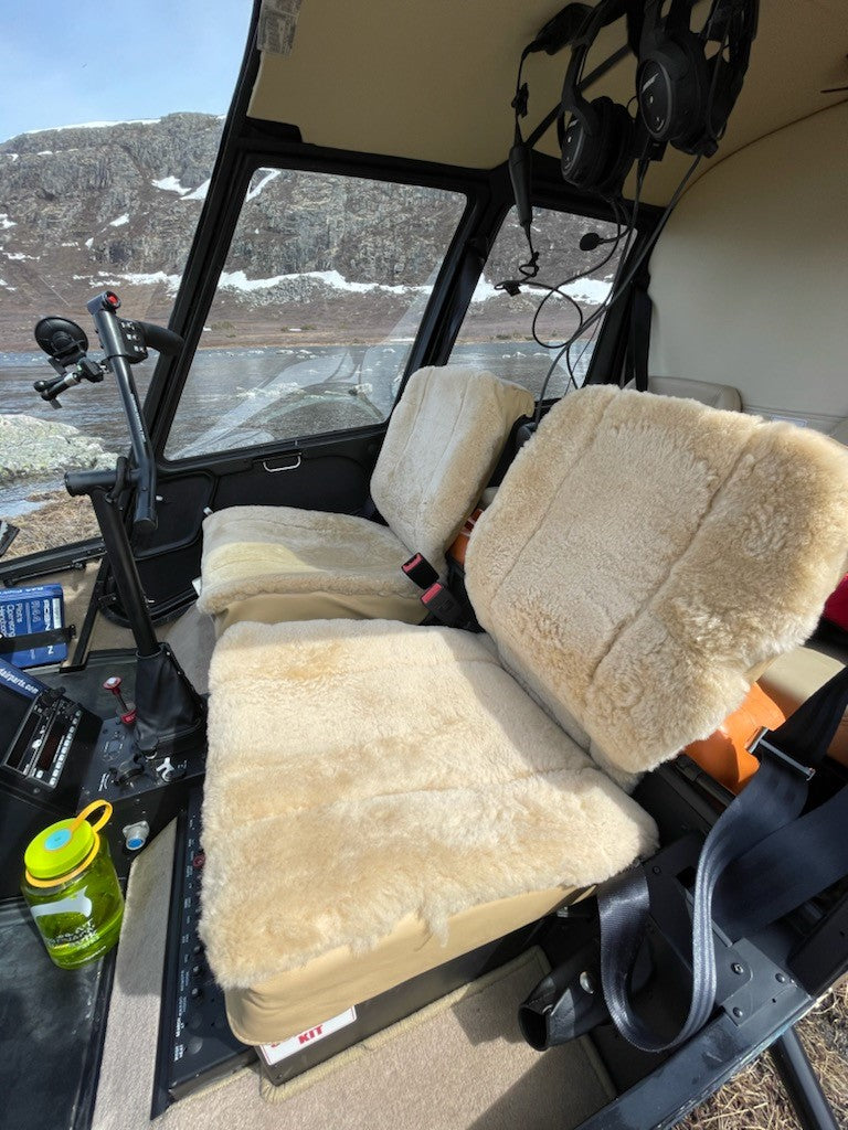 This project involved supplying sheepskin seat overcovers for a helicopter client based in Canada. The client requested a custom solution to protect the front seats of their Robinson R44 helicopter, and Generation Global developed the overcovers, which are now available for purchase directly from our website.