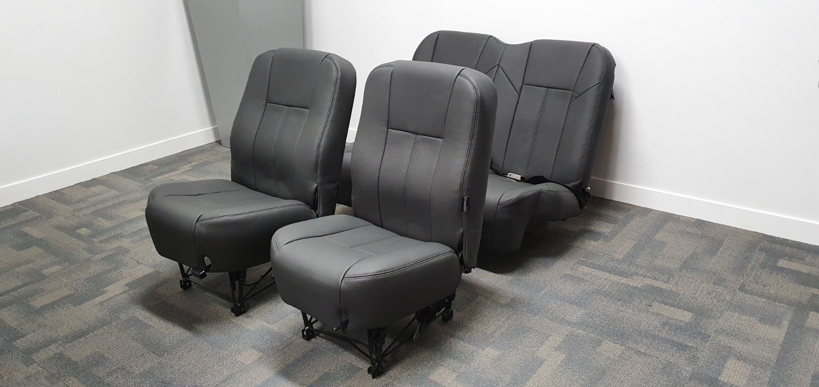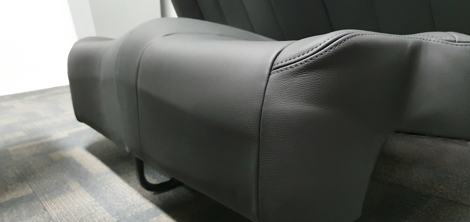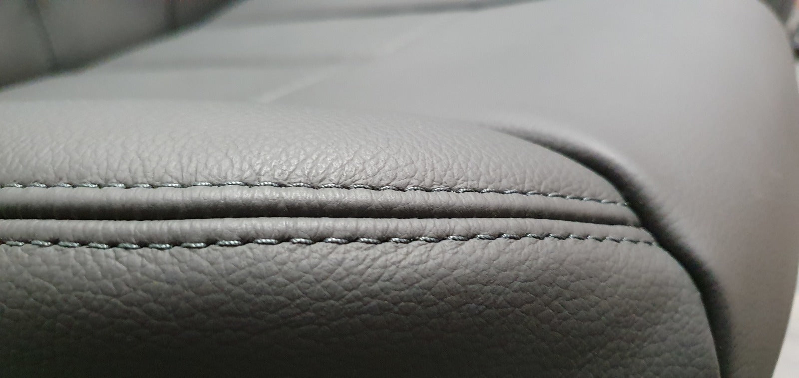 Each seat insert was finished with vertical stitching, while double-stitched outer seams in matching thread tied the look together.