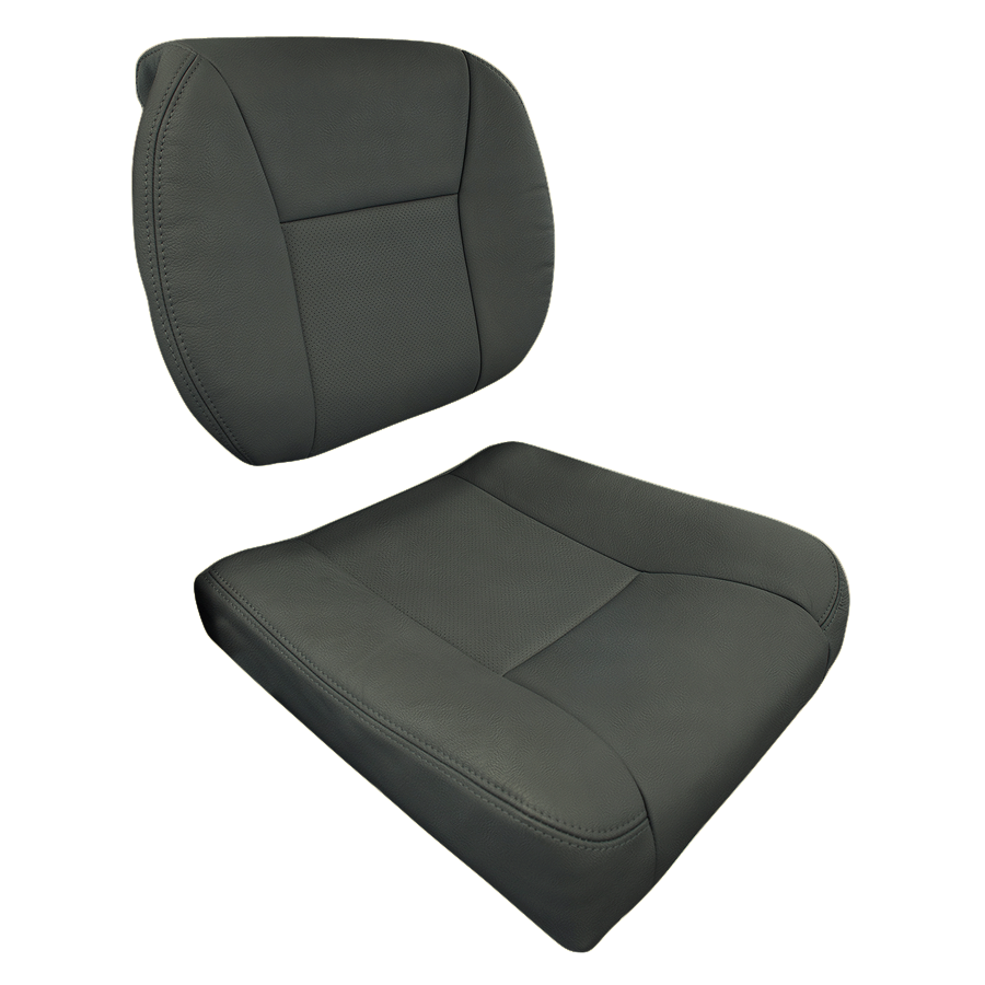 The seats are designed in the ‘Generation II’ style and are made from Charcoal Grey (ADI-1121) aviation leather, with matching stitching. The design is sleek and minimalist, with a flat center insert panel, without contrasting colors, perforations, or quilting, ensuring a clean, uniform look.