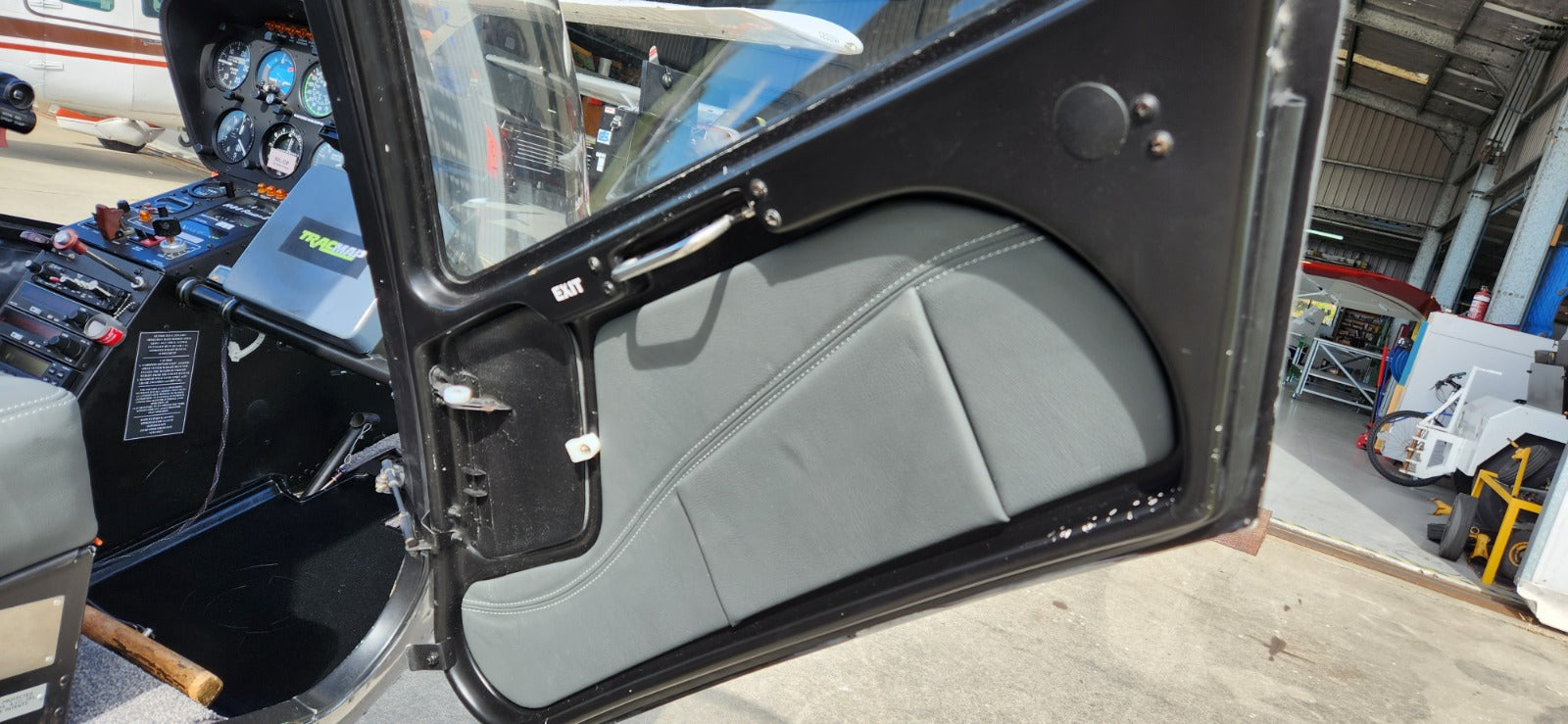 This Robinson R44 helicopter interior project involved the supply and installation of a new interior, using standard parts available on the Generation Global online shop. The refurbishment included seat upholstery, headlining and bulkhead, door inserts, and floor coverings.