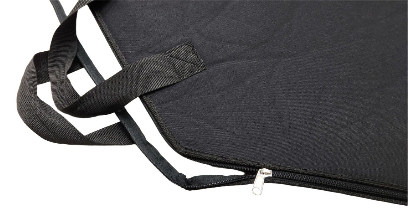 A door storage bag for the pilot's right-hand door is included. The bag is made from black durable canvas with a padded inner lining to protect the door when removed, a common practice for spraying or agricultural operations.