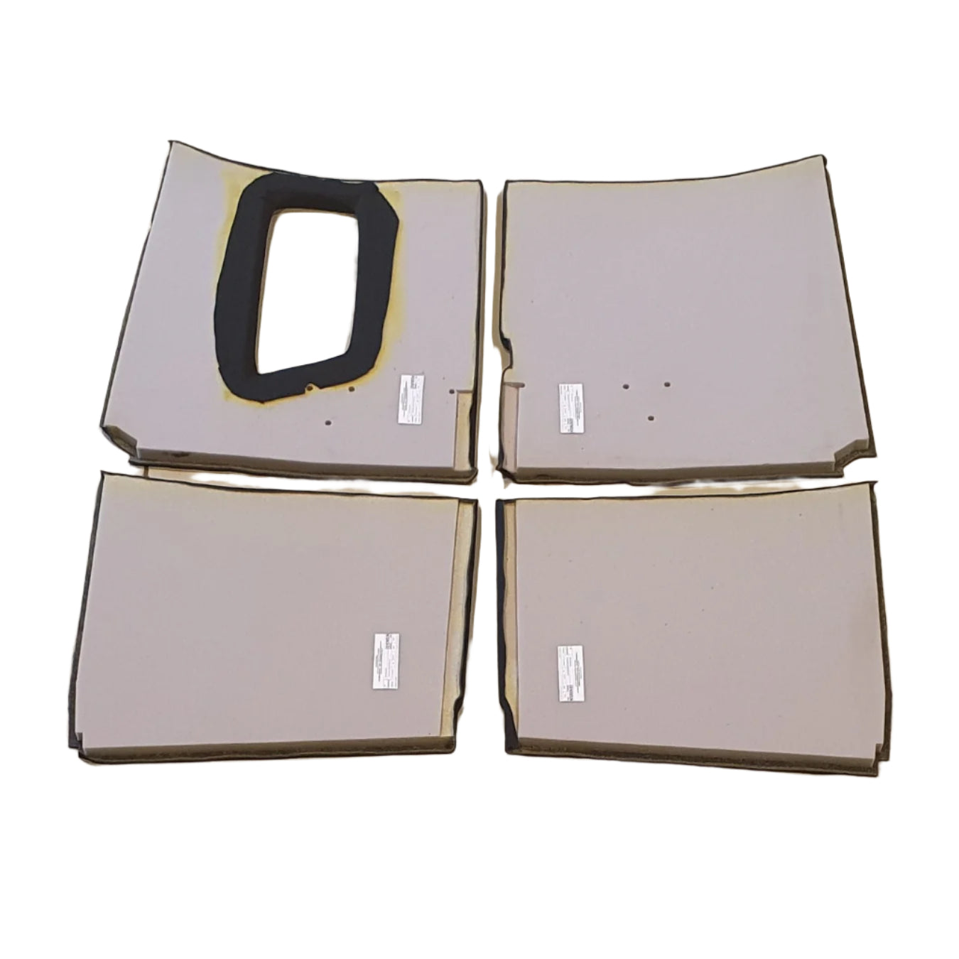 The headlining consisted of four panels wrapped with black fabric and fitted into the aircraftβs ceiling. The panels were designed with cutouts for features such as the window and hand holds above the doors, allowing for a clean and functional installation that integrates well with the aircraft's design.