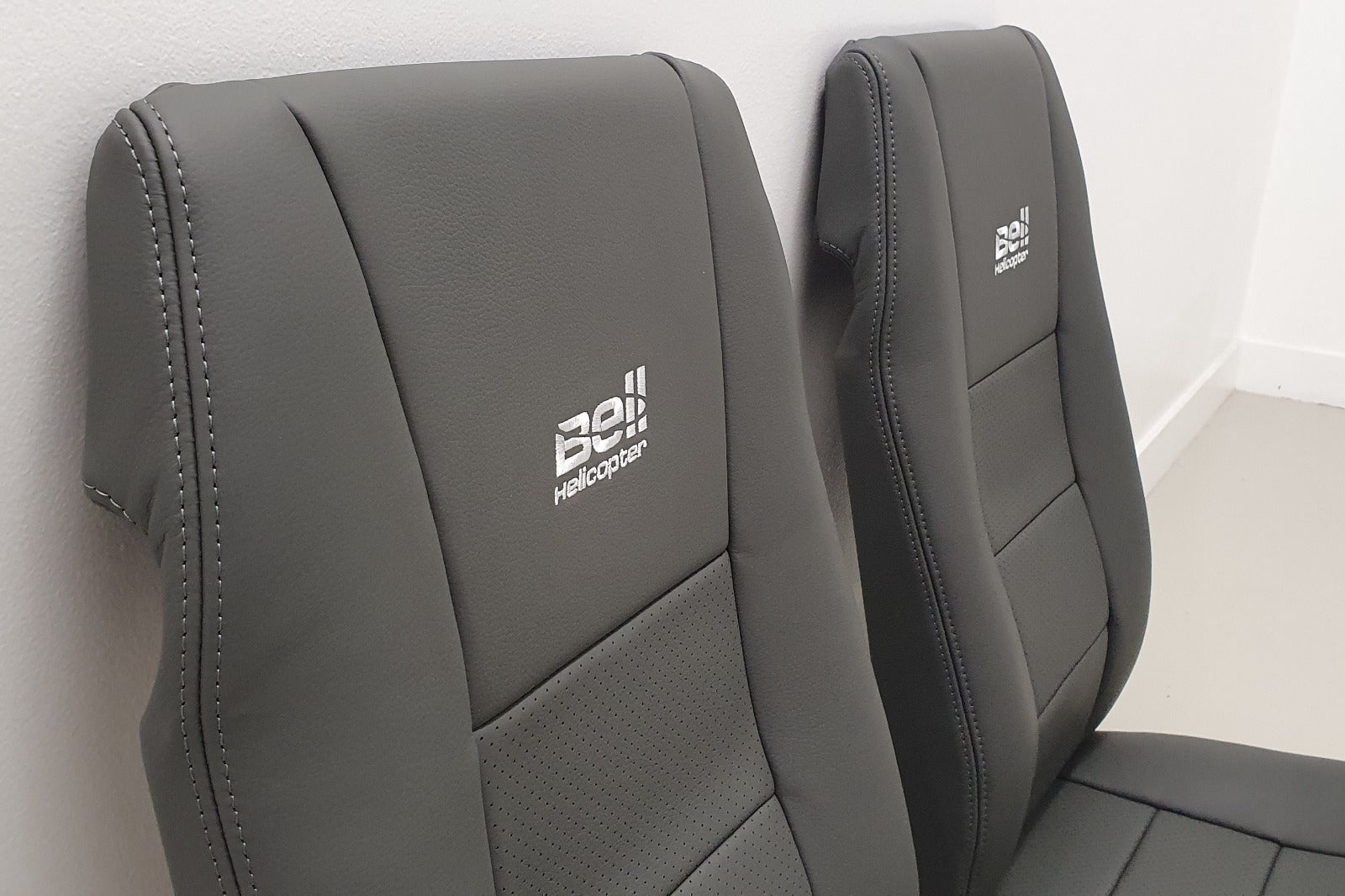 Detailed Schweizer logo embroidery in a lighter-colored thread was added to each seatback, adding a custom touch that matches the helicopter’s professional look