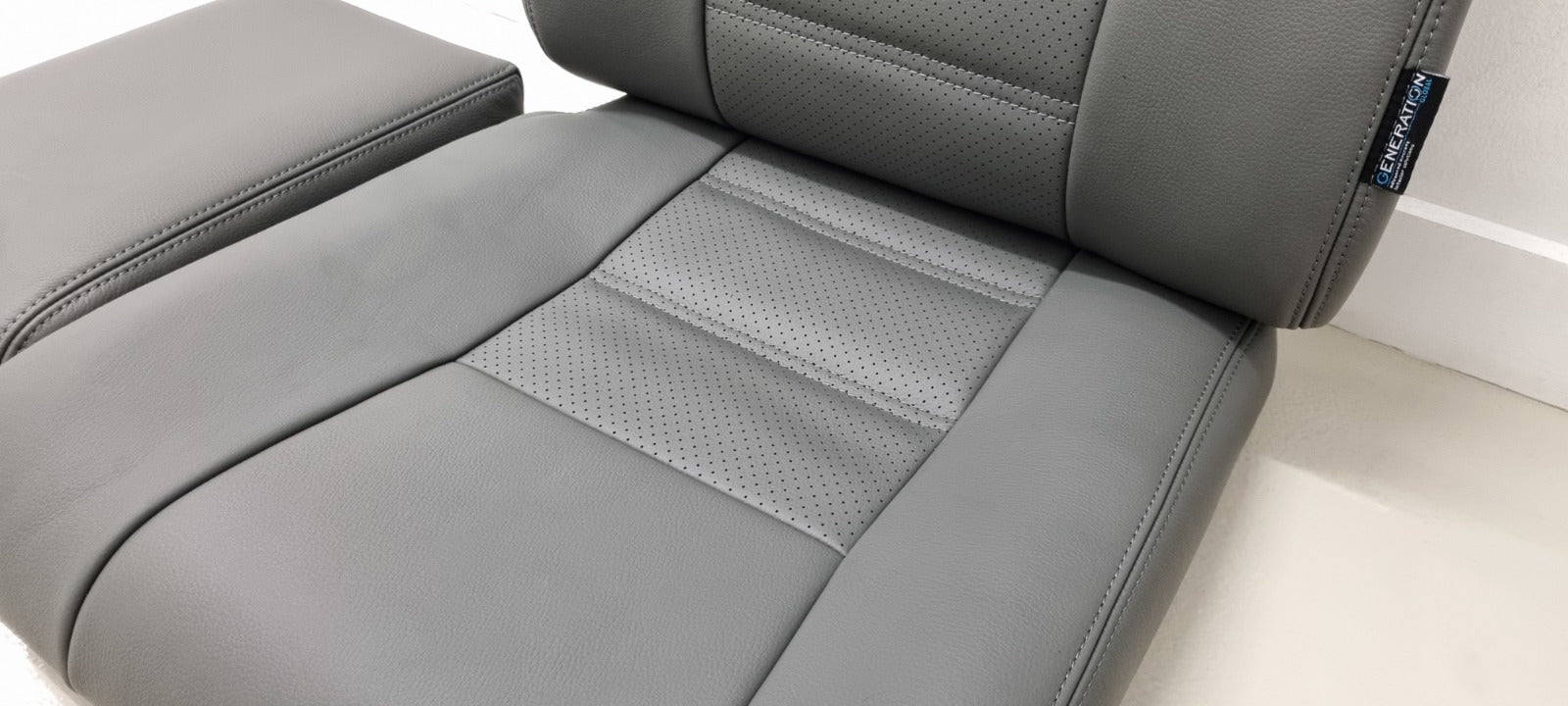 We provided custom seat back and base covers, along with new cushions for the crew seat, passenger seat, and the center “dicky” seat. All parts used for this project are available through Generation Global’s online shop.
