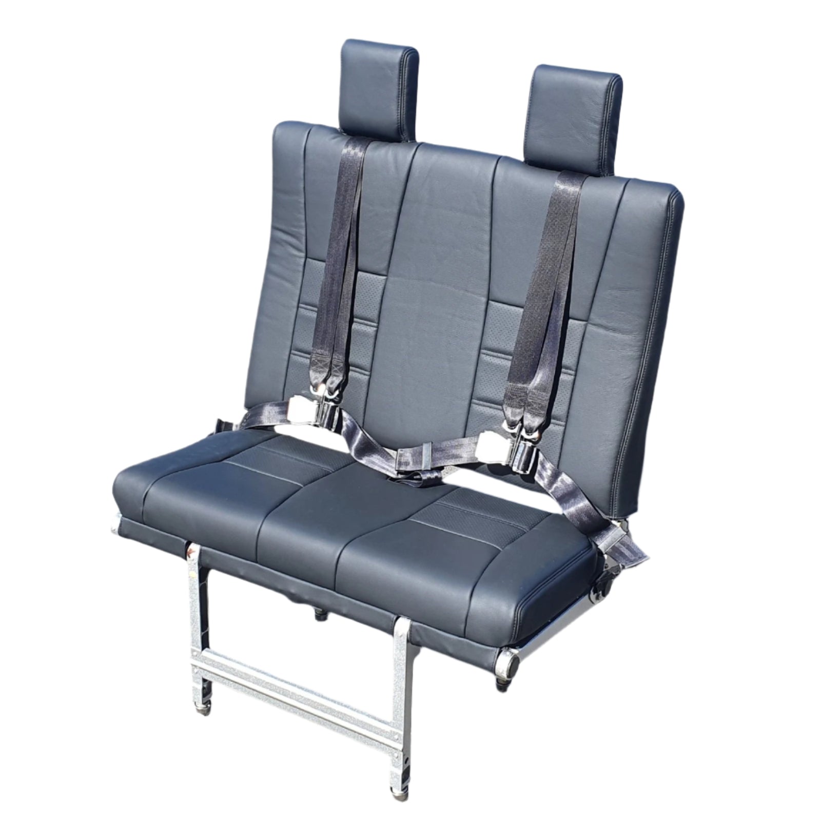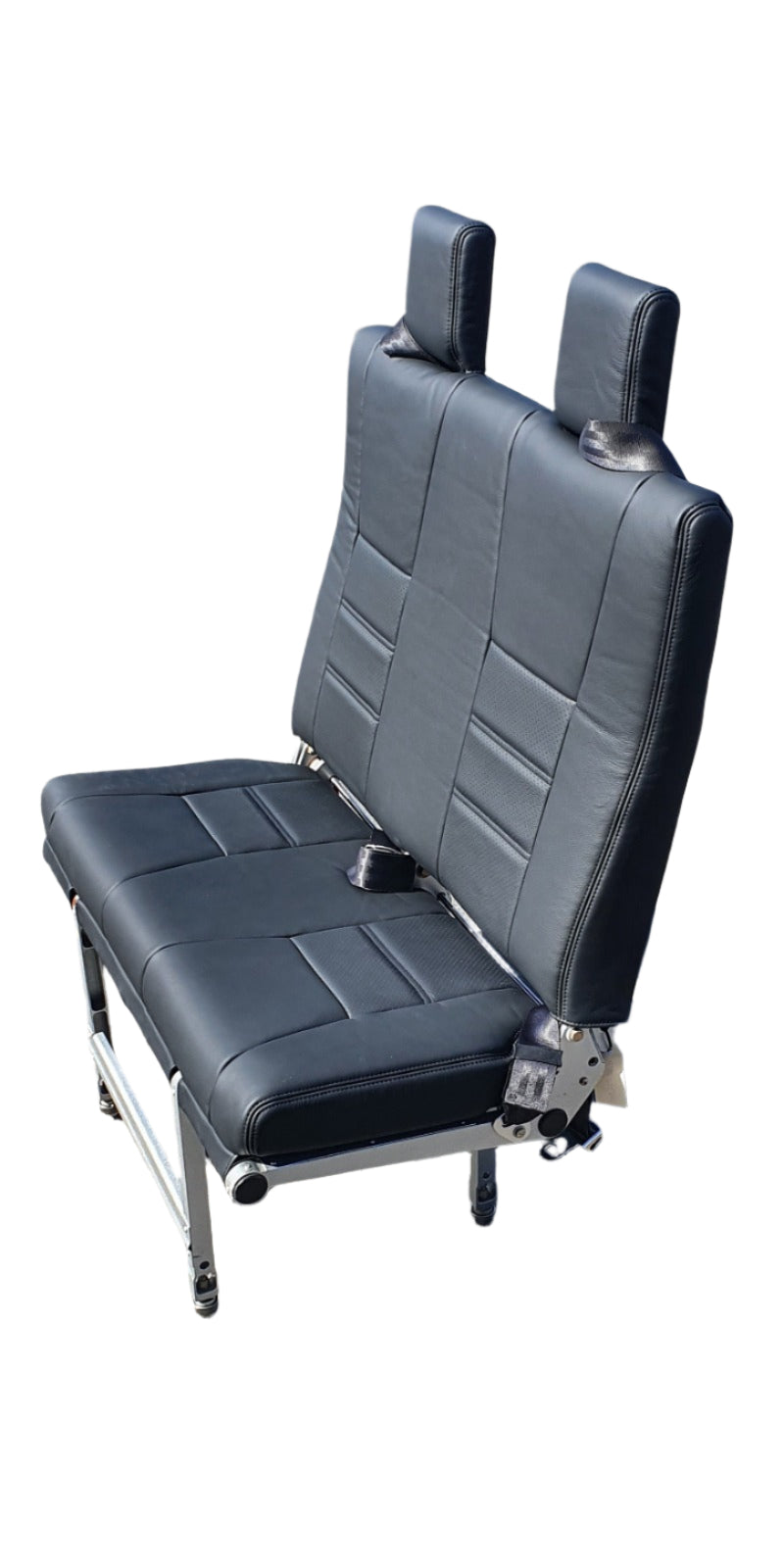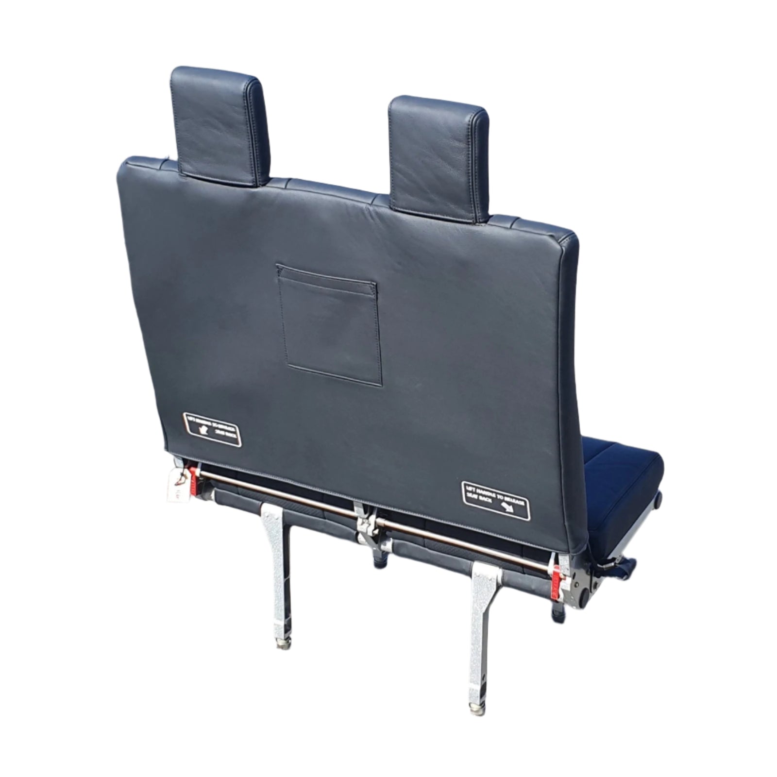 This helicopter was initially not configured in an executive style, with two-seater aircrew bench seats in the cabin and two single crew seats in the cockpit. All new seat covers were crafted from black leather (ADI-1091), featuring SP1 perforated leather inserts for breathability. The inserts were enhanced with horizontal double stitching done in black thread, matching the leather’s color for a sleek, unified design. Additionally, all plastic parts on the crew seats were wrapped in black vinyl, adding a cohesive touch to the overall seating aesthetic. -