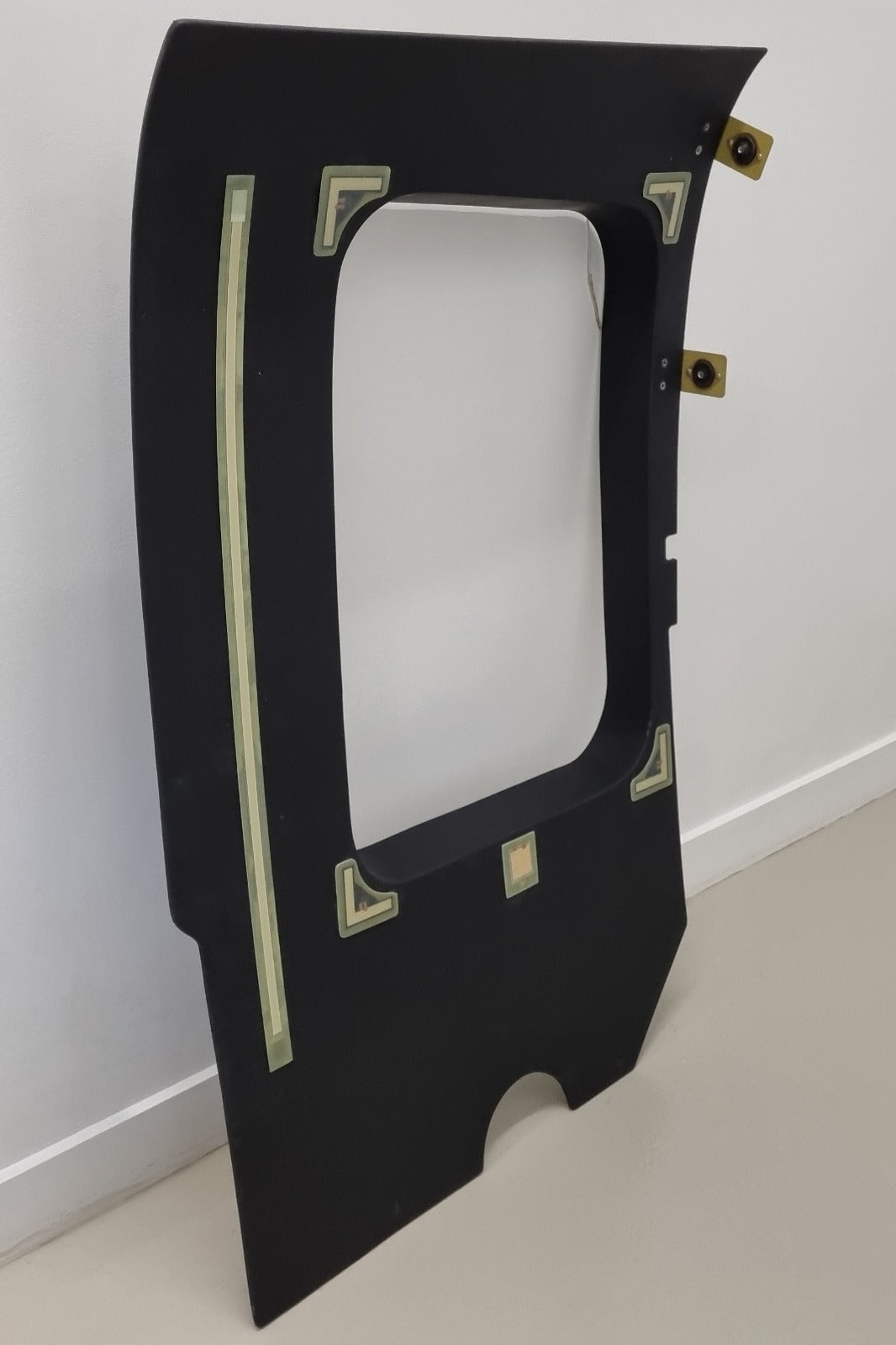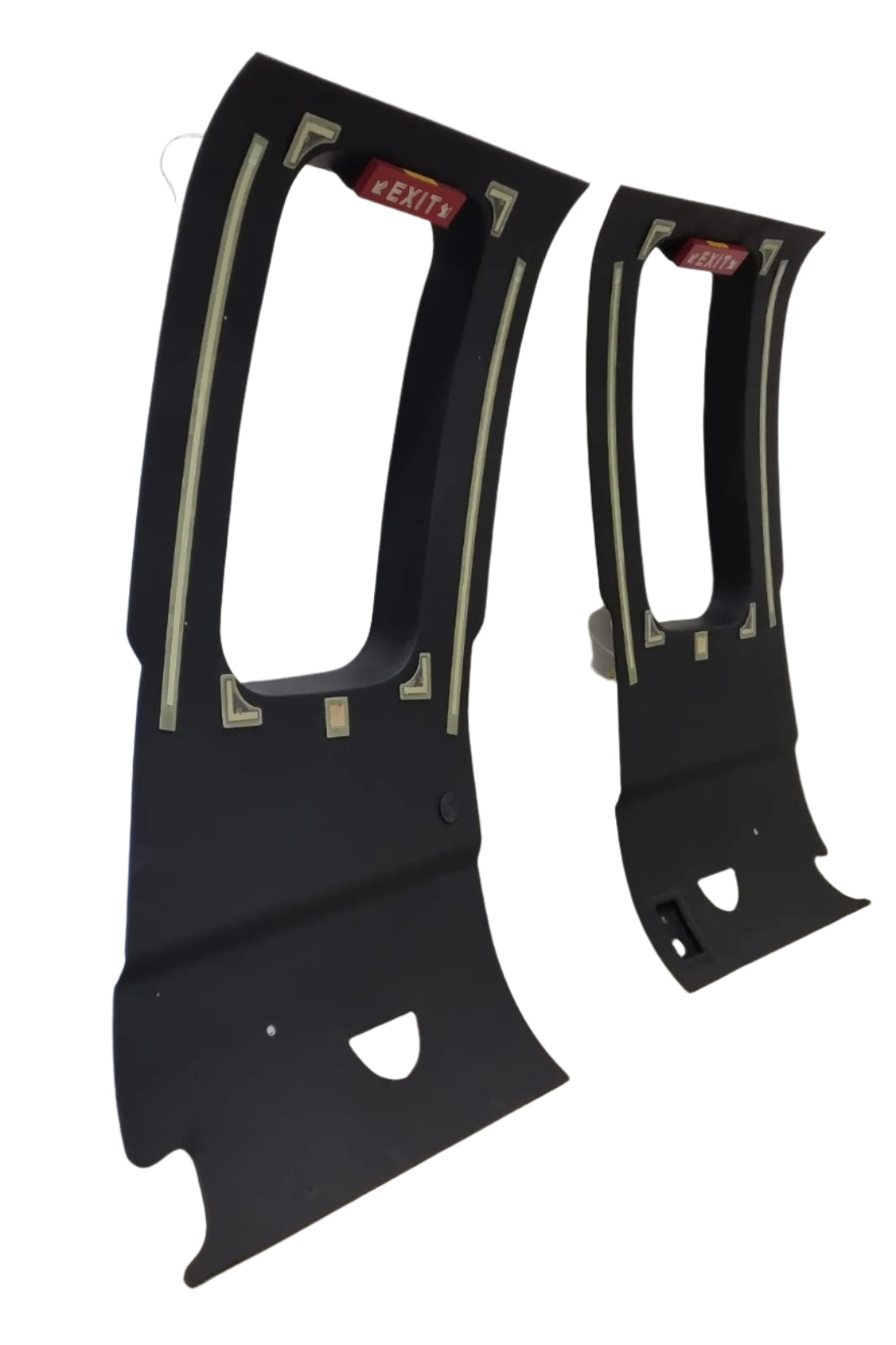 The interior paneling was removed and sent to our Nelson, New Zealand facility for refurbishment. At the facility, the panels were thoroughly cleaned and prepared before being wrapped in matte black vinyl. We then installed lighting, air conditioning, and speaker components onto the panels, followed by the attachment of placards to ensure that the panels were both functional and visually striking when reinstalled. -