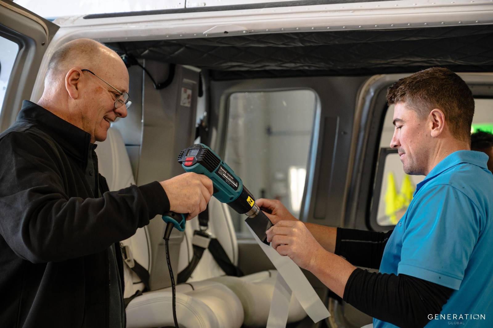 Finally, the day came. The helicopter arrived, and the Generation Global team dove straight into the installation process. Thanks to an incredible team effort, and a total of just 29 hours of work, we were able to present the completed interior to the owner. The transformation was remarkable, and we were all thrilled with the finished product.