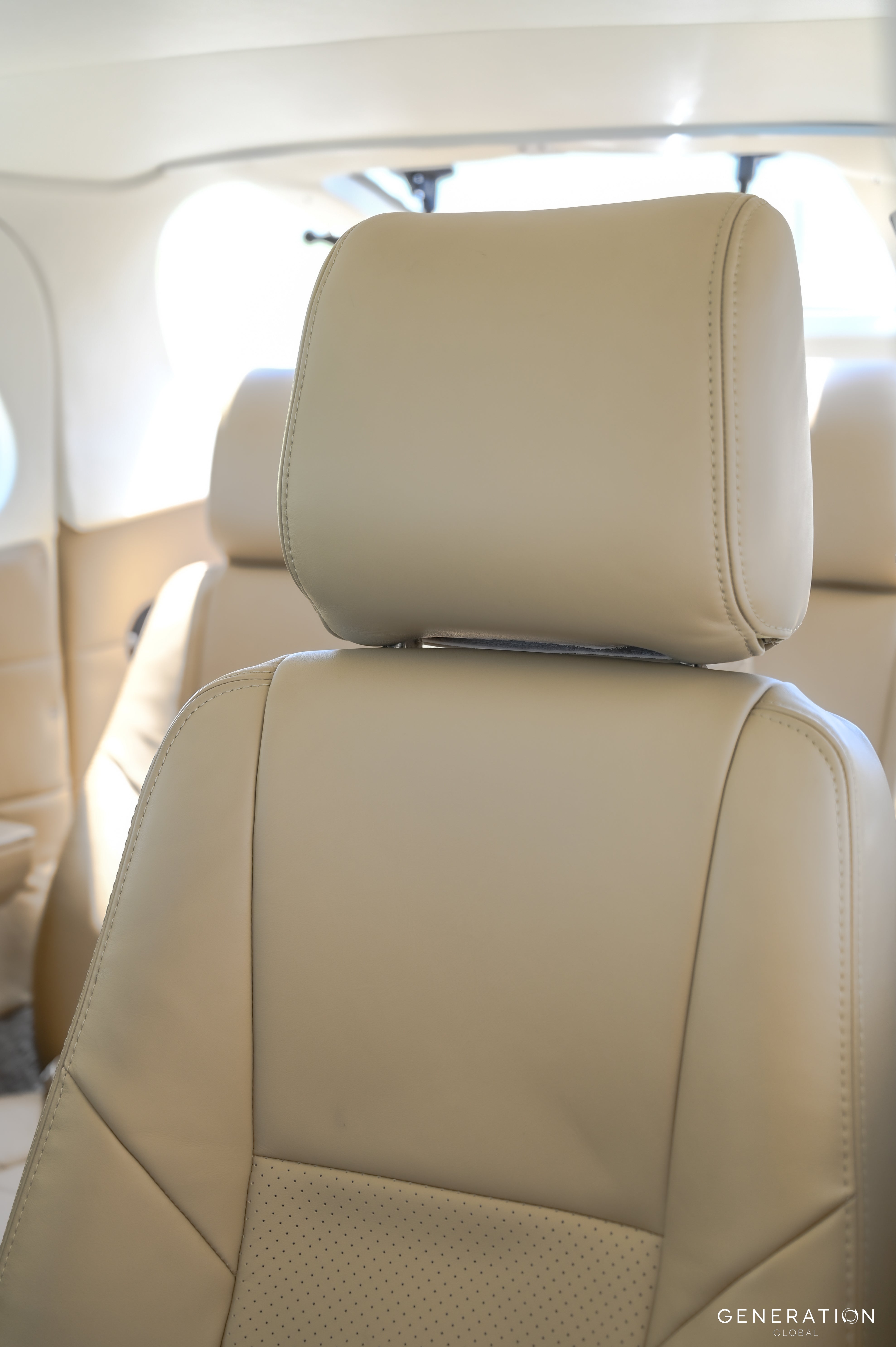 This Cessna 206 interior features a warm, inviting color scheme and uses high-quality materials that combine comfort with durability. The seats are upholstered with perforated center inserts, offering a refined look and feel that lasts.