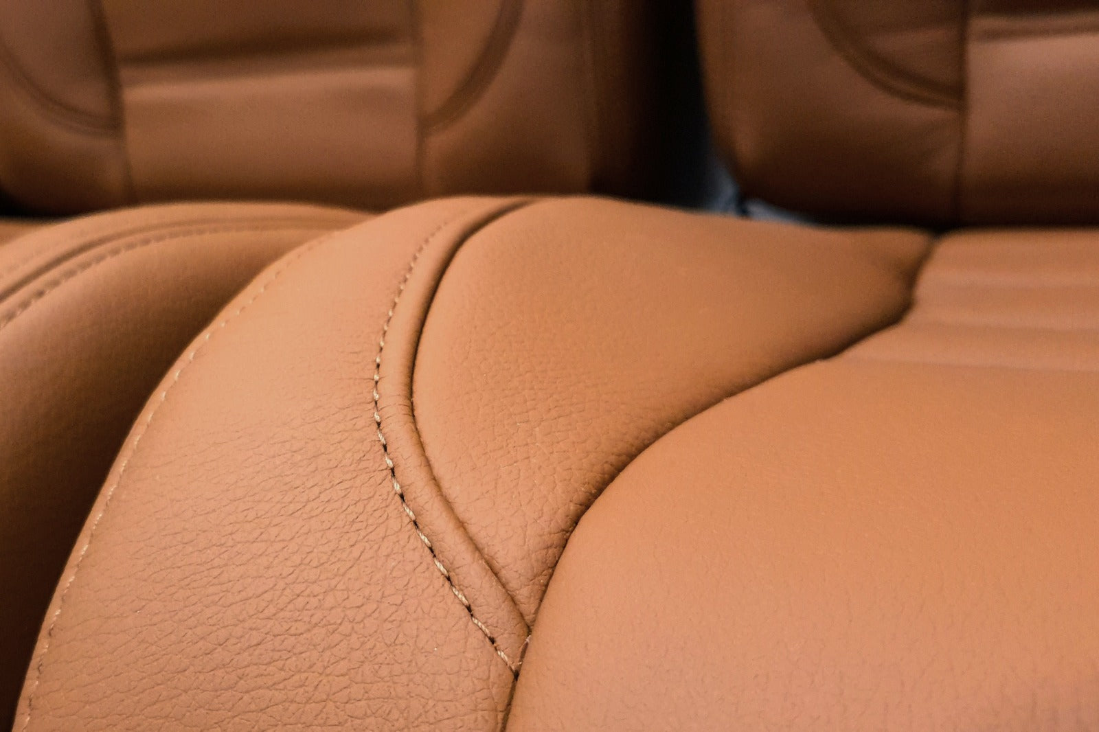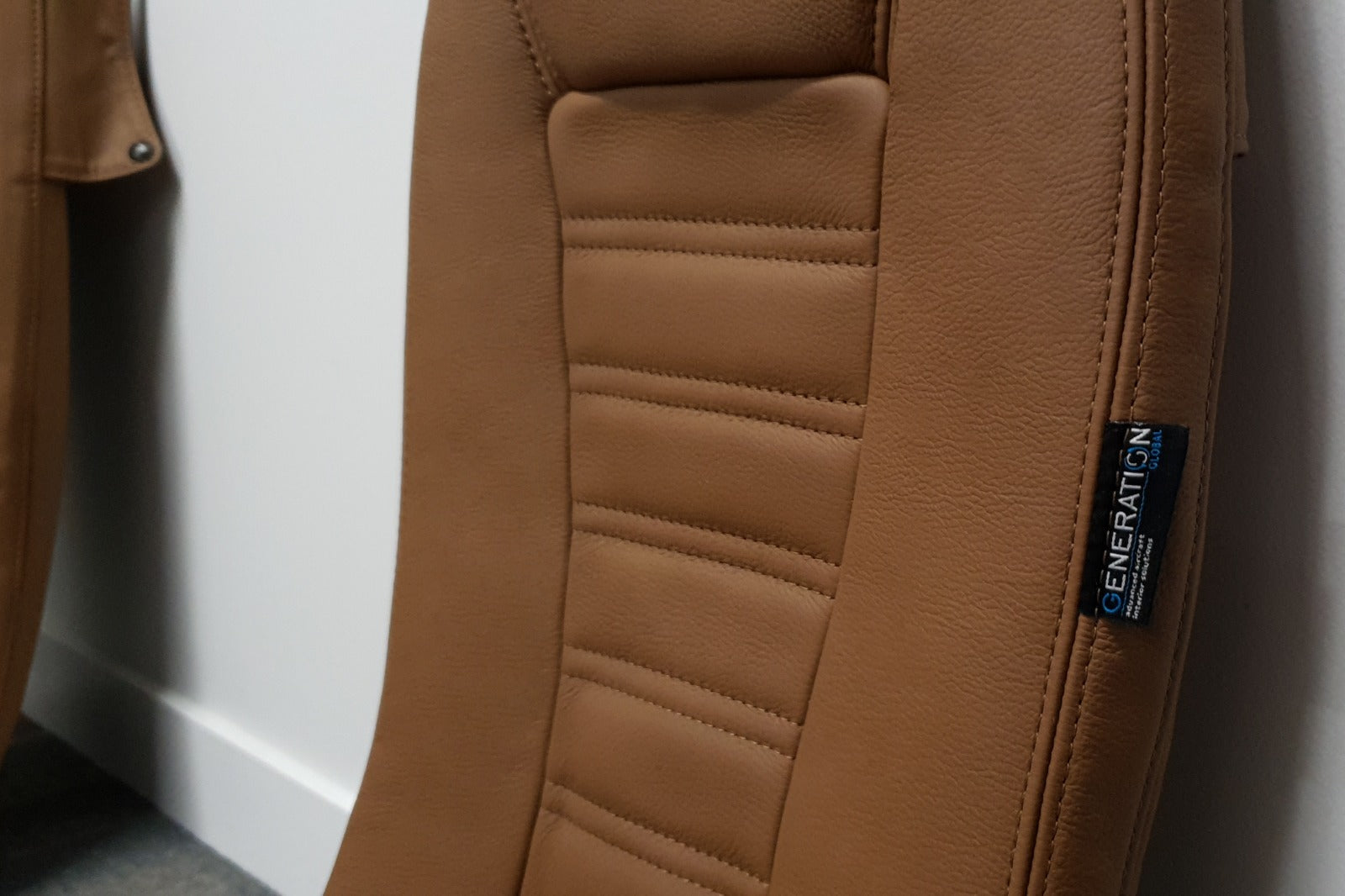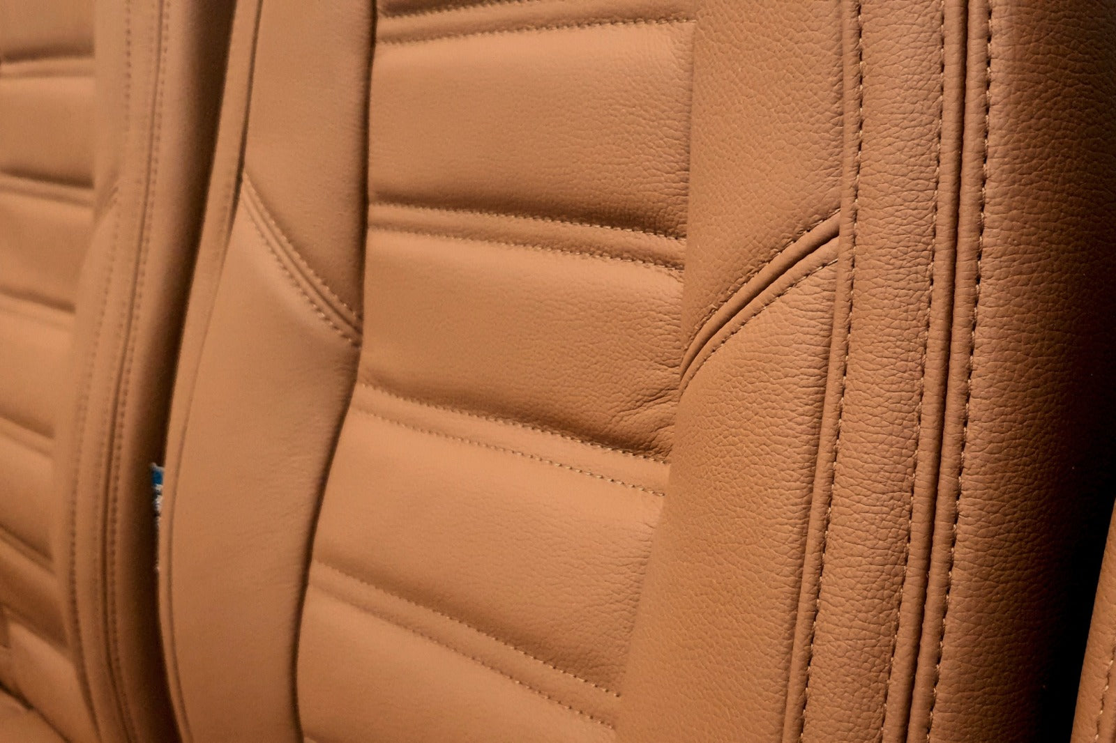 The stitching on the seat covers was done in matching hues, ensuring a cohesive and seamless design that highlighted the distinct features of the Generation III rear seats and Sicma 159 series crew seats.