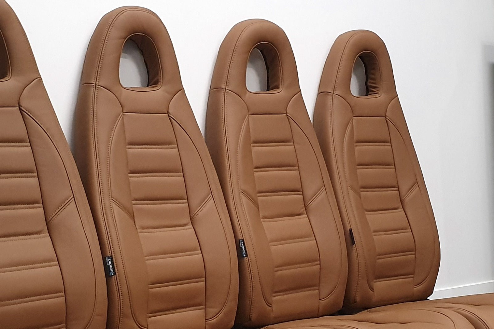 AS350 Seat Refurbishment for Helicopter Safari Tours in Kenya – Custom Saddle Brown Leather Upholstery by Generation Global